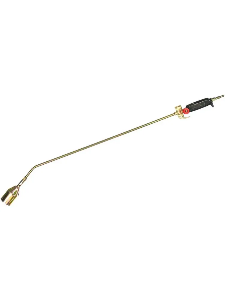 Горелка кровельная ГВ-111 Обладает увеличенной длиной - 950 мм, что дает возможность проводить нагрев и спайку различных материалов даже в труднодоступных местах, например, на высоте. Установка требуемой мощности пламени осуществляется посредством движения одной руки, - это стало возможным за счет рычажного исполнения. Изделие обладает низким весом что удобно при его транспортировке. Выходное соединение горелки - М12х1.25.